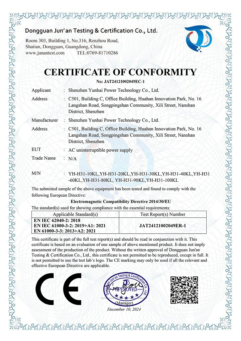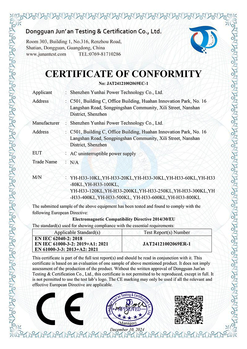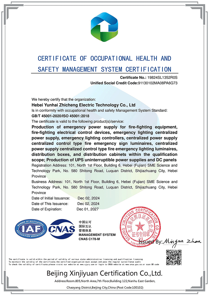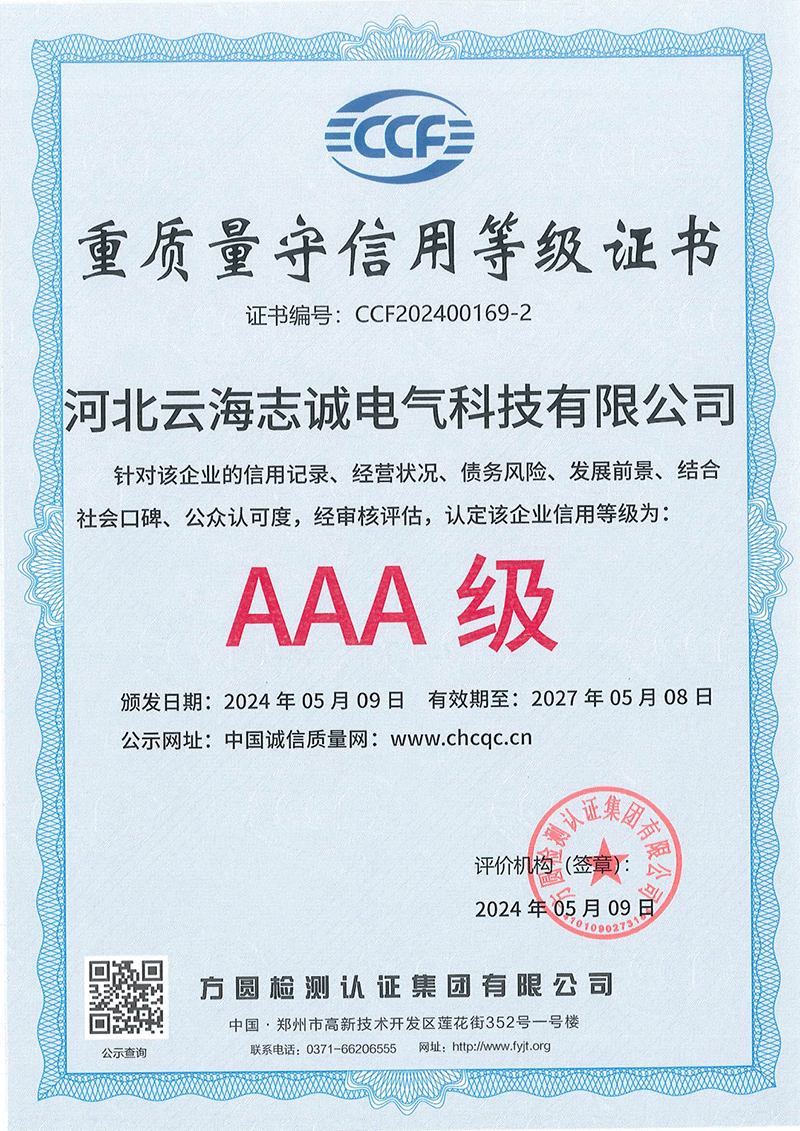 Hebei Yunhai Zhicheng Electric Technology Co., Ltd. has passed ISO9001 international quality management system certification, ISO14001 environmental management system certification, ISO45001 health system certification, AAA enterprise credit certification. Its products have obtained national product type inspection reports, 3C certificates, China Energy saving certification, and multiple patent certificates and software copyright certificates. The company has also been recognized as a technology-based small and medium-sized enterprise and a national high-tech enterprise in Hebei Province in 2023.