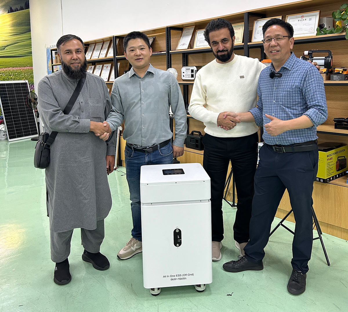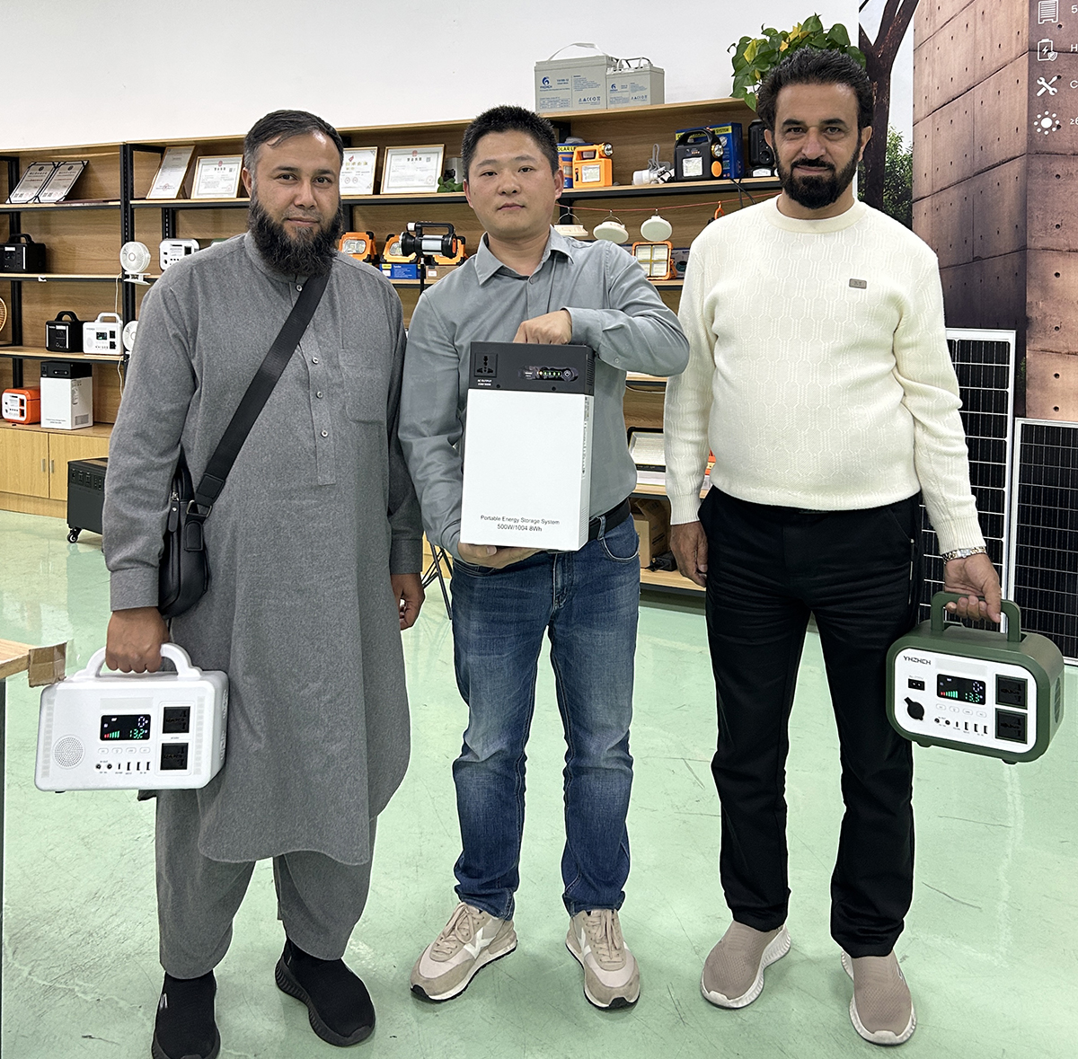 During the inspection, the relevant person in charge of the company warmly received Afghan customers, and introduced in detail the development history of the company, the research and development strength of core technologies, the manufacturing capacity and the global market layout, so that customers can fully understand our industry accumulation and competitive advantages in the field of portable energy. In the exhibition hall experience area, customers focused on the physical display and performance demonstration of portable power stations, and felt the core highlights of the products in terms of endurance, output stability and extreme environmental adaptability at close range.