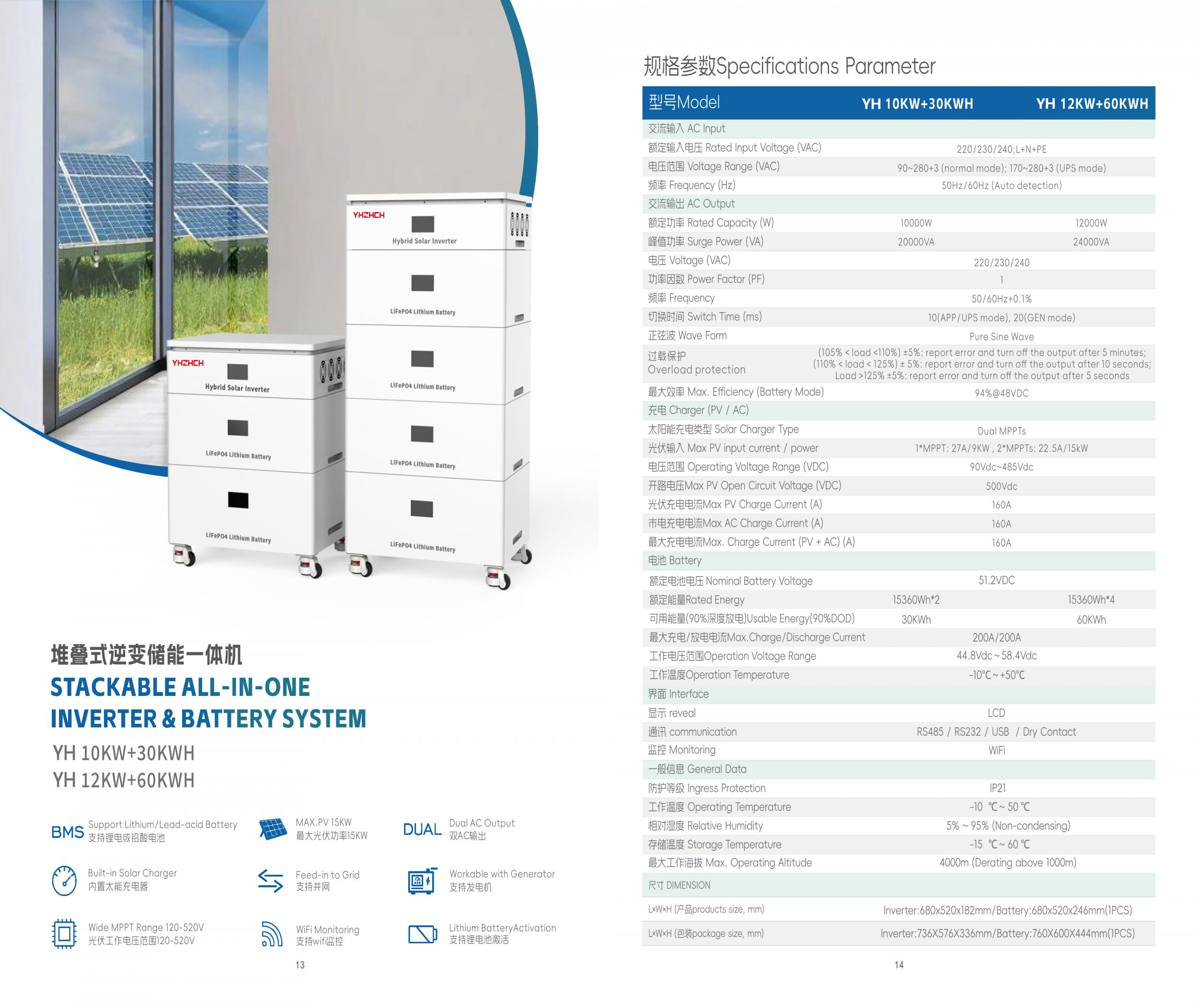 1.Support Lithium/Lead-acid Battery 2.Built-in Solar Charger 3.Wide MPPT Range 120-520V 4.MAX.PV 15KW 5.Feed-in to Grid 6.WiFi Monitoring 7.Dual AC Output 8.Workable with Generator 9.Lith