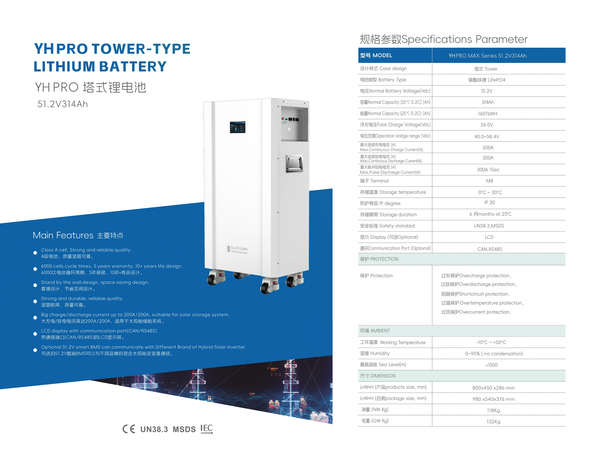 YH51.2V314AH/16076WH tower lithium battery