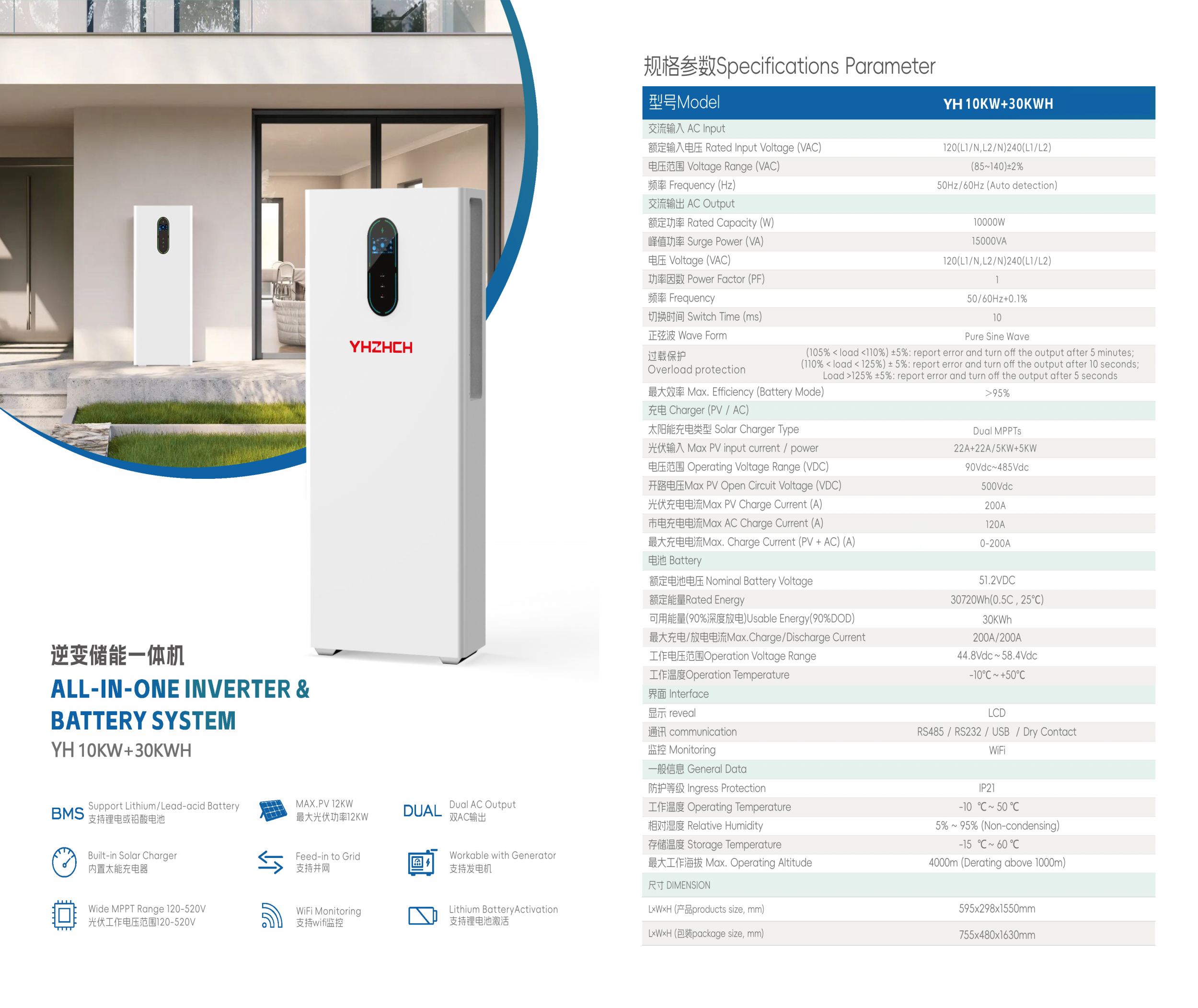 1. Integrated design of inverter and BMS 2. Support photovoltaic charging 3. The working voltage range of photovoltaics is 10-55V 4. The number of cycles can reach 8000 times 5. Comprehensive prot
