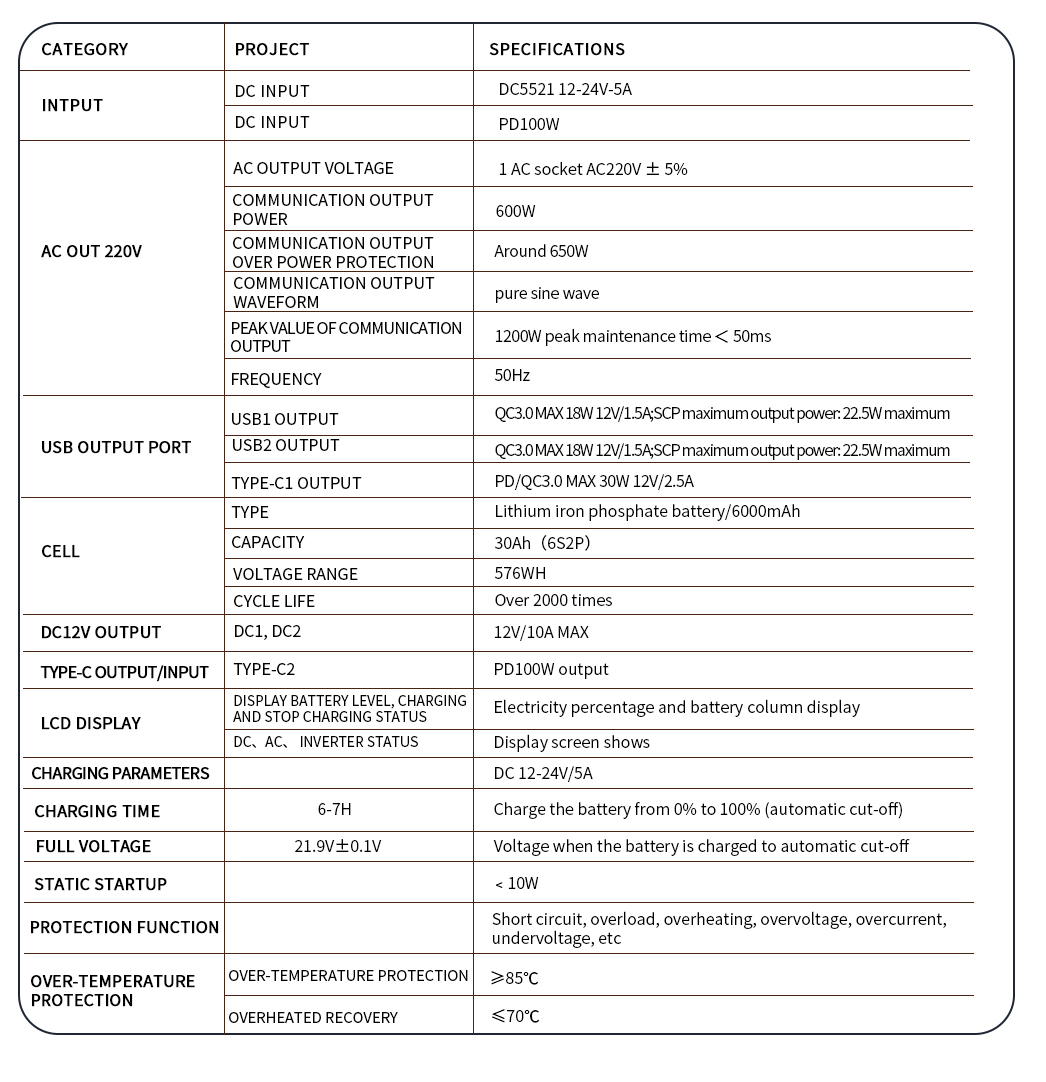 This product is a portable outdoor energy storage power supply suitable for outdoor camping, emergency communication, medical rescue, fire rescue, long-distance self driving tours, outdoor fishing and other fields. It can provide 600W power to your electronic devices outdoors.