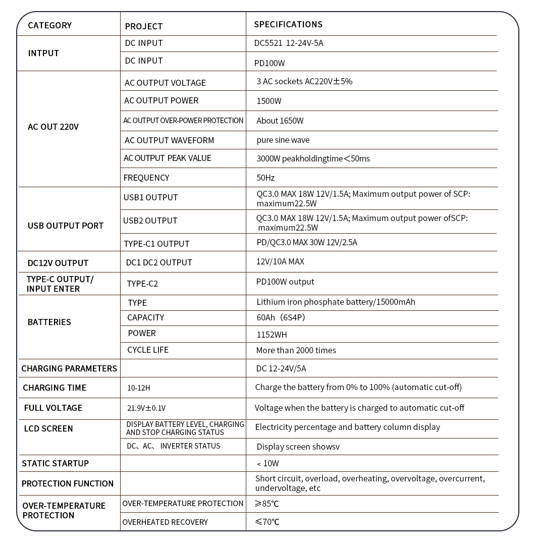 This product is a portable outdoor energy storage power supply suitable for outdoor camping, emergency communication, medical rescue, fire rescue, long-distance self driving tours, outdoor fishing and other fields. It can provide 1500W power to your electronic devices outdoors.